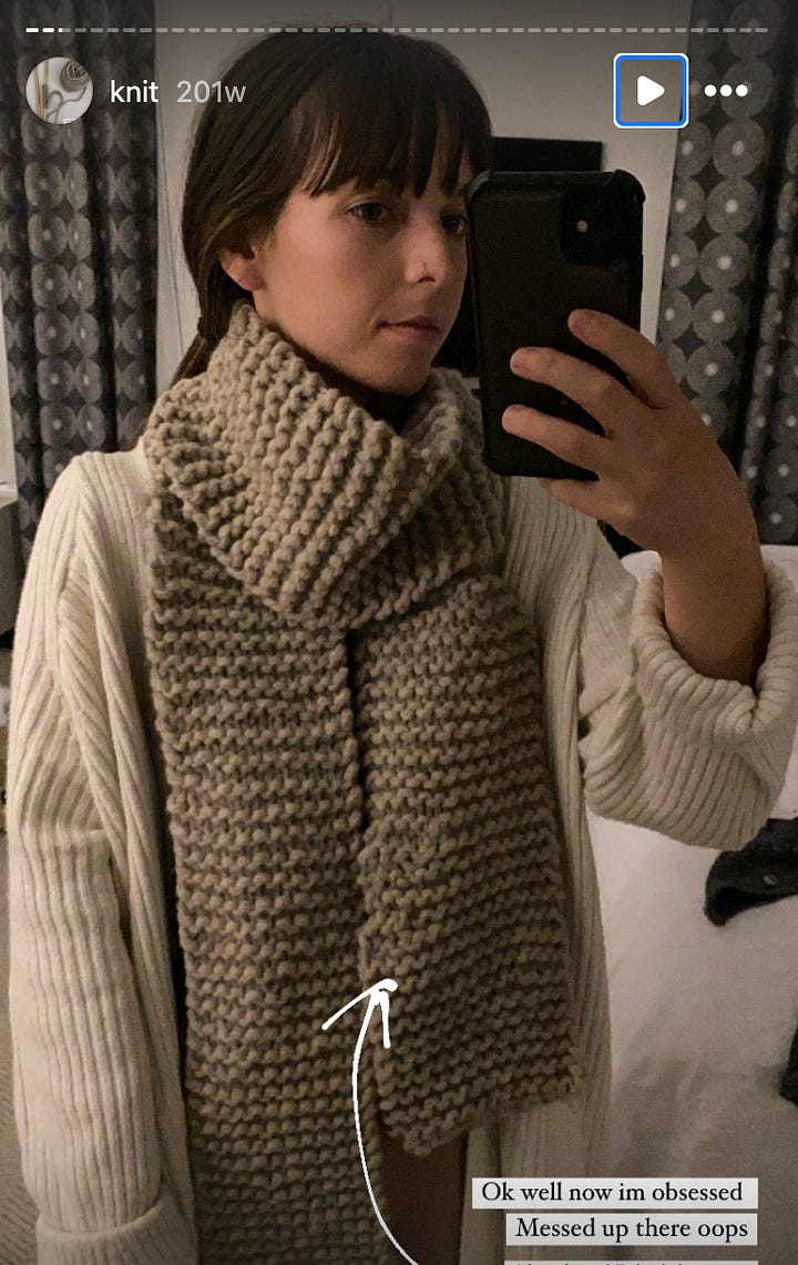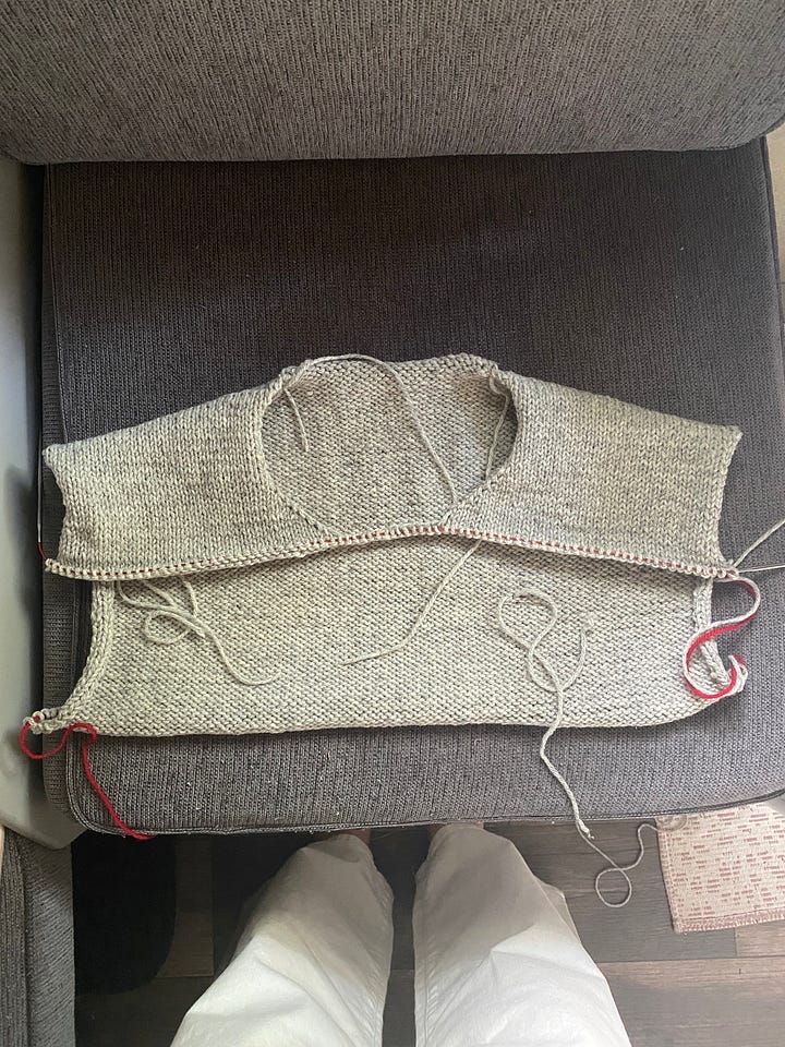 LASTLY (will be shocked if anyone is still reading!) - for the Cloud Sweater, I wanted to copy the yarns of one of the samples, so I ordered Isager Soft and Soft Silk Mohair and knit up a swatch on the recommended US7. I was SHOCKED when the swatch came out way too big/loose. With another project not meeting gauge, I researched extensively online, asked knitting friends (and ChatGPT, which I feel weird about but it can be so helpful ugh!), and found out two key things: 1) Petite Knit is known to be a tight knitter 2) I think I am a loose knitter 3) Meeting gauge is personal to each knitter and it’s not uncommon to have to adjust needle sizes. I am planning to swatch again on smaller needles and am hoping I can meet the required gauge, because if not I will be even more confused.