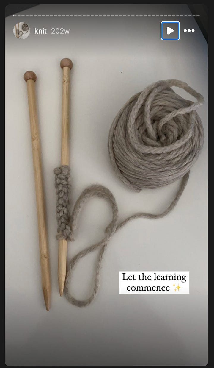 Back in October of 2021 I decided to learn to knit. And I did learn! I asked for help at a local yarn shop where I was living at the time in South Carolina to pick out needles and yarn that would work together to make a simple scarf. I understood that in order to knit sweaters, which was my goal, I needed to first know the basics: how to do a knit stitch, a purl stitch, and how to cast on. So that’s what I focused on practicing and it worked! I ended up making a handful of things in my first foray into knitting in 2021, but here’s the thing: I hated everything I made